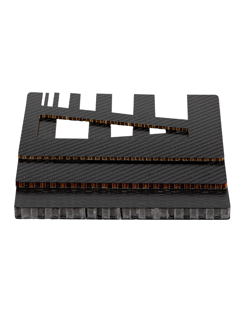 Waterjet cutting carbon honeycomb panels is possible for any client. This is a way to cut shapes from virtually any sheet material. This type of processing ensures clean cuts, consistent and high quality, and no distortion or discoloration.