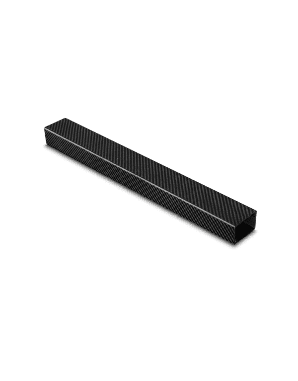 The rectangular carbon fibre tubes are laminated from prepreg High Strength Carbon fibres and epoxy resin. The outer layer has a “twill” weave with the traditional “carbon look”. The fibres are laminated in different directions in the wall thickness of the tube. This ensures unique stiffness and strength as well as low weight. These rectangular carbon tubes are far more resistant to bending than metal alternatives.